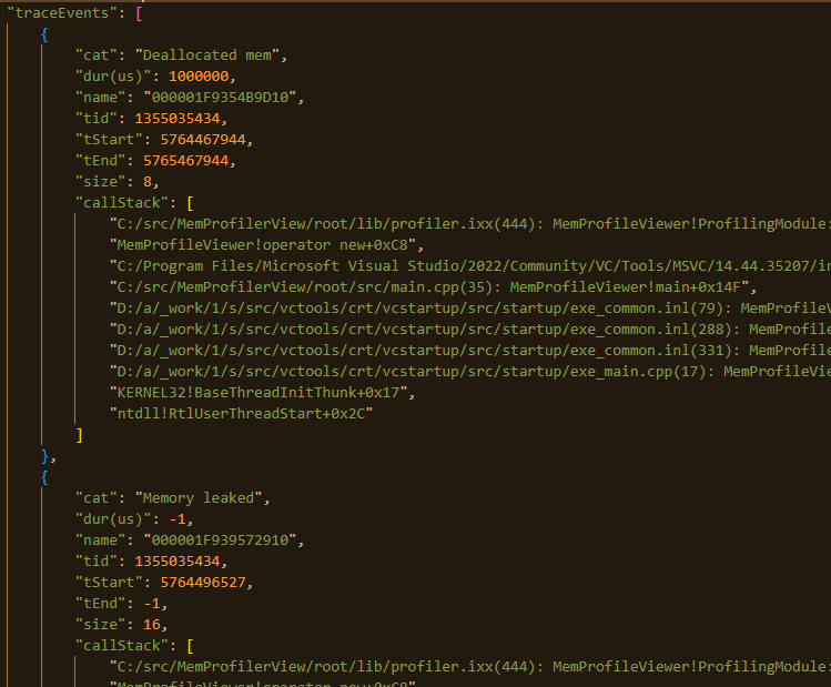 The library allows to profile individual scopes of code and generates json reports with the stack trace of which line of code allocated the memory how long it was allocated for and whether the memory got properly de-allocated or not.